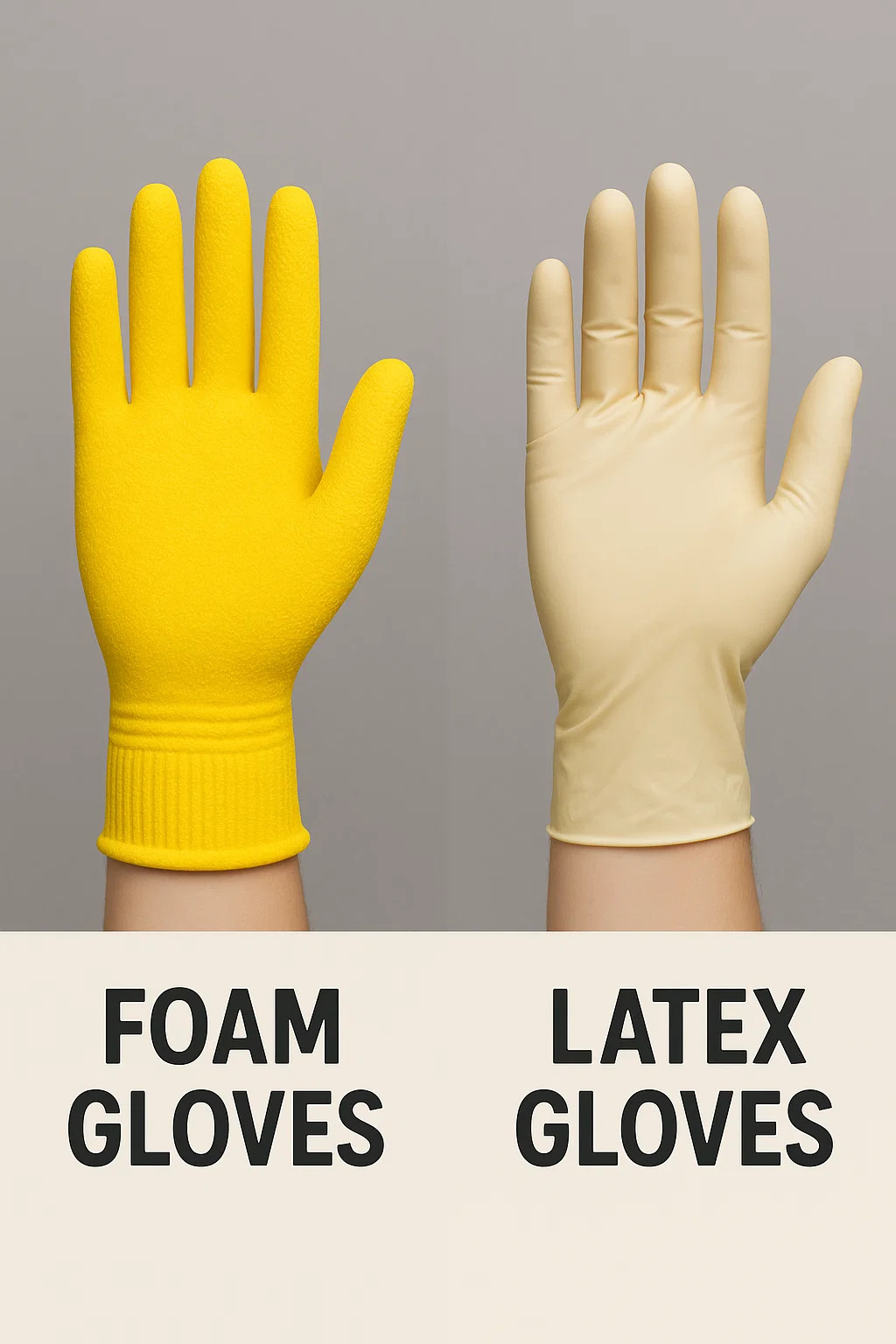 Istilah "sarung tangan busa" dan "sarung tangan lateks" mengacu pada produk berbeda dengan bahan, struktur, dan kegunaan berbeda. Berikut rincian yang jelas: