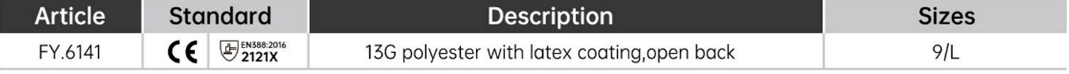 Lapisan lateks memberikan perlindungan yang baik untuk ketahanan aus dan tusukan, serta menawarkan cengkeraman yang sangat baik.